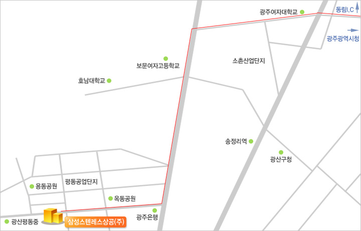 | µ¿¸²I.C ¡æ ±¤ÁÖ½Ãû(Æòµ¿»ê´Ü ÀÌÁ¤Ç¥) ¡æ Æòµ¿»ê´Ü ¹æÇâÀ¸·Î ¹«Áø·Î¸¦ Ÿ¼ ¡æ Æòµ¿°ø´Ü ¹æÇâÀ¸·Î, ´Ù¸® ¹ØÀ¸·Î ÁÂȸÀüÇÏ¿© ÁöÇϵµ¸¦ Áö³ª¸é ¡æ Æòµ¿°ø´Ü 3¹ø µµ·Î·Î ¿ìȸÀüÇÏ¿© ¡æ µÎ¹øÂ° »ç°Å¸® Áö³ª 50M ÈÄ ¿ÞÂÊÀÔ´Ï´Ù. |